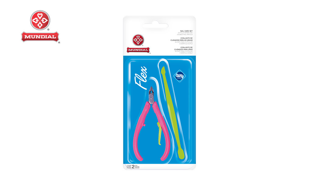 CONJUNTO MUNDIAL LINHA FLEX ALICATE + ESPATULA DUPLA - COR ROSA